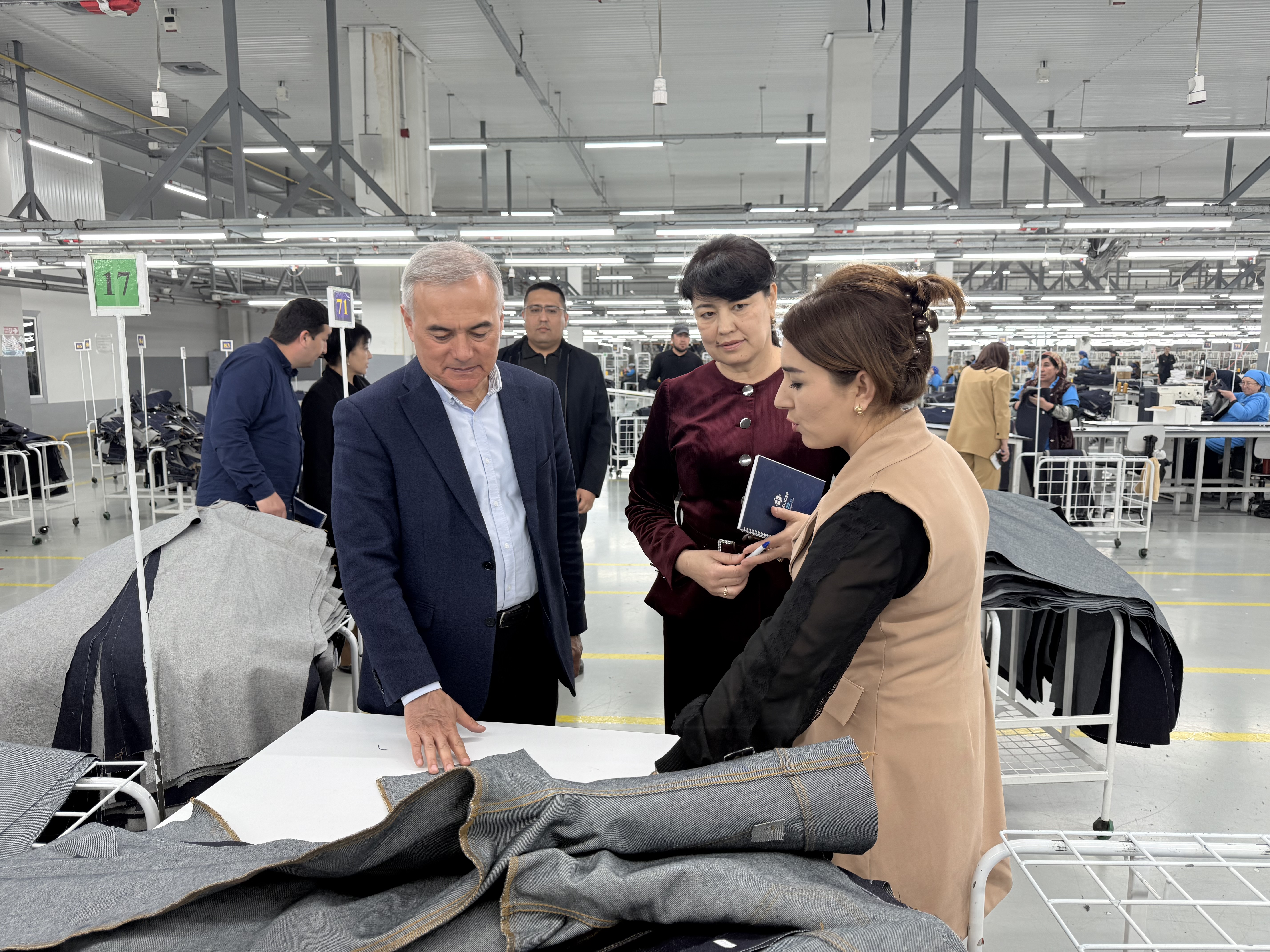Ishchi guruh dastlab Andijon shahridagi “DIROMM” MCHJ korxonasida bo‘lib, uning ishlab chiqarish jarayonlari bilan yaqindan tanishdi. Korxonada jinsi matodan erkaklar va ayollar uchun zamonaviy hamda sifatli kiyim-kechaklar tayyorlanayapti.